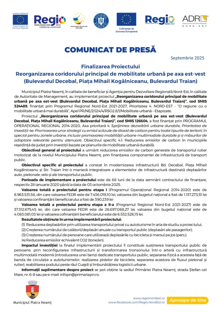 HomeNOUTĂȚIFinalizarea Proiectului Reorganizarea coridorului principal de mobilitate urbană pe axa est-vest (Bulevardul Decebal, Piața Mihail Kogălniceanu, Bulevardul Traian) Finalizarea Proiectului Reorganizarea coridorului principal de mobilitate urbană pe axa est-vest (Bulevardul Decebal, Piața Mihail Kogălniceanu, Bulevardul Traian) September 30, 2025byadmin