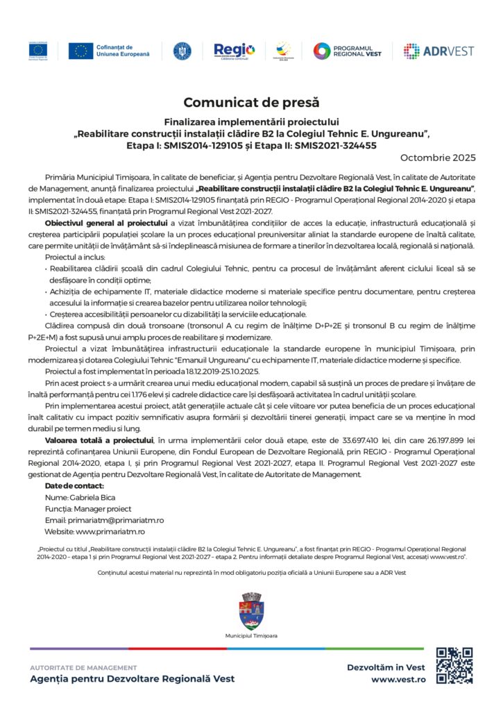 HomeNOUTĂȚIReabilitare construcții instalații clădire B2 la Colegiul Tehnic E. Ungureanu Reabilitare construcții instalații clădire B2 la Colegiul Tehnic E. Ungureanu October 8, 2025byadmin