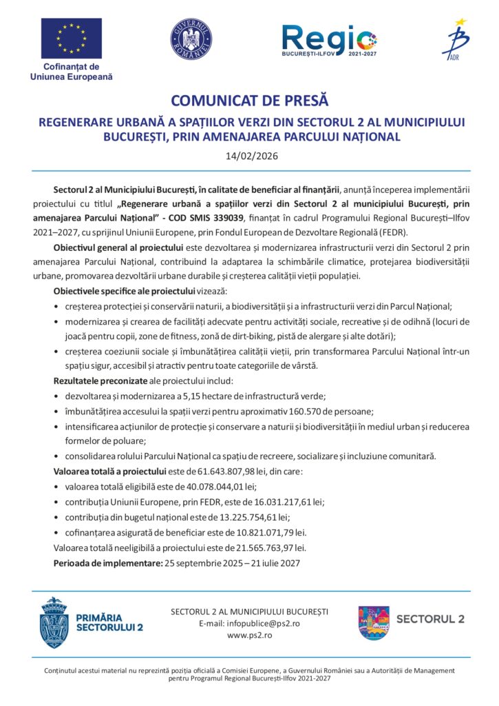HomeNOUTĂȚIRegenerare urbană a spațiilor verzi din Sectorul 2 al municipiului București, prin amenajarea Parcului Național Regenerare urbană a spațiilor verzi din Sectorul 2 al municipiului București, prin amenajarea Parcului Național February 15, 2026byadmin